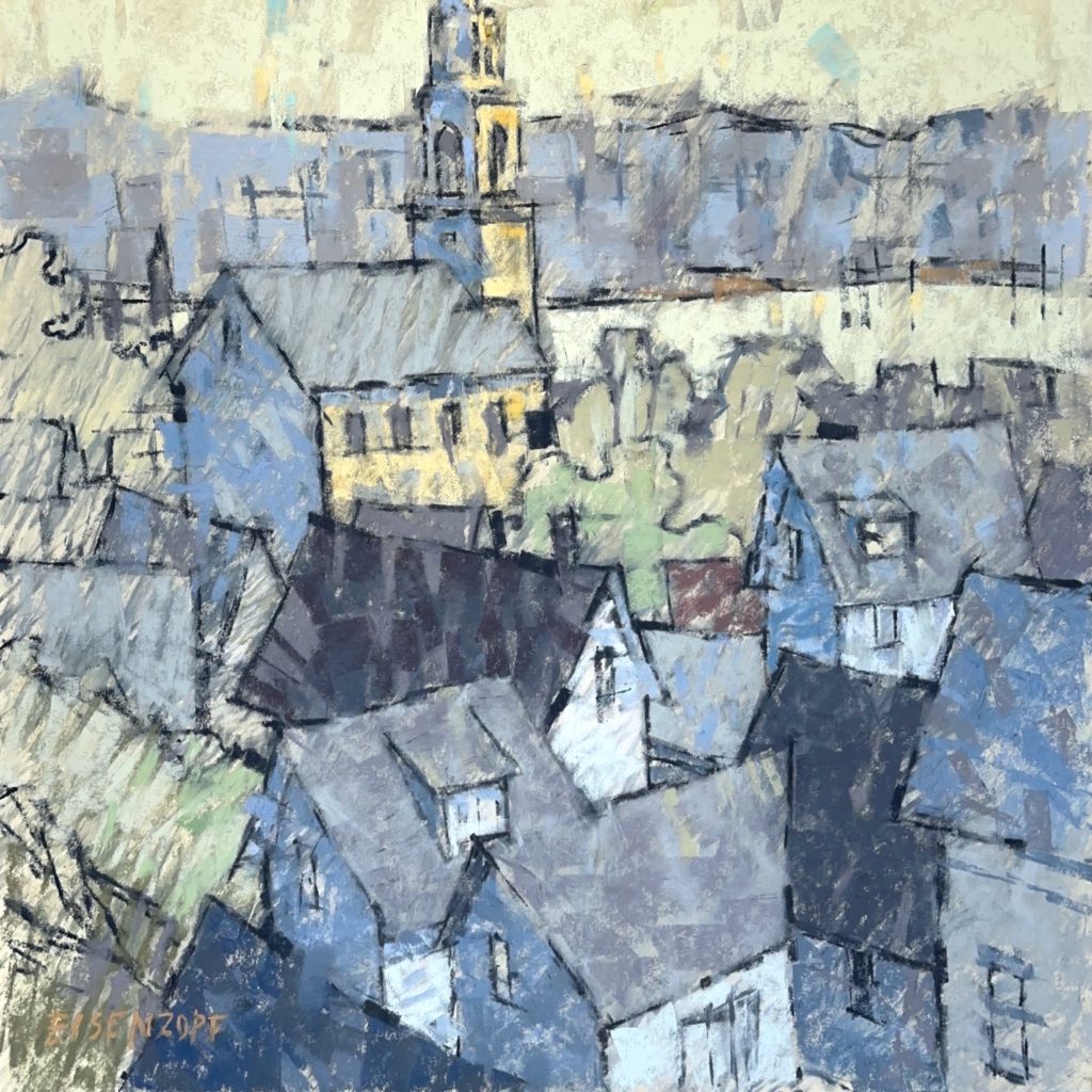 A serial sketcher growing up, Alex Eisenzopf got his first formal instruction at a local community college, eventually transferring to Pratt Institute in New York City. Eisenzopf spent most of the years since college working in commercial art and illustration and traveled extensively in Asia and Europe overseeing product design and development for major corporate clients. Now a full time artist, Eisenzopf has spent the last five years renewing his drawing skills, further developing his style and technique and attending plein air events. He lives with his artist wife in the Smoky Mountains of North Carolina.