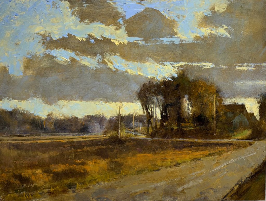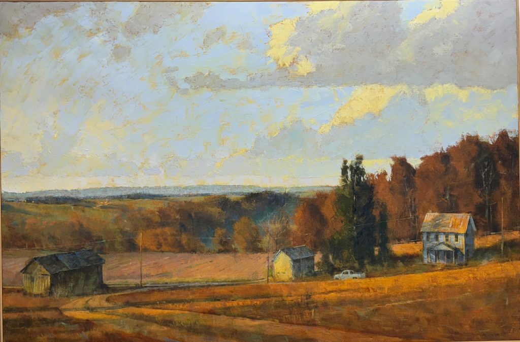While participating in Plein Air Easton, 2022, my painting,”Hay Bales” won the Life on The Farm Award. Recently, in May 2023, my painting,”Old Ridge Road” won Best in Show at the Wayne Art Center Plein Air Festival in Wayne, PA.