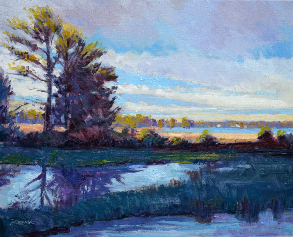 I capture the seasonal changes of the landscape through my plein air paintings. My enthusiasm for plein air takes me outside to paint fields, marshes, farms, rivers and bays wherever I travel.